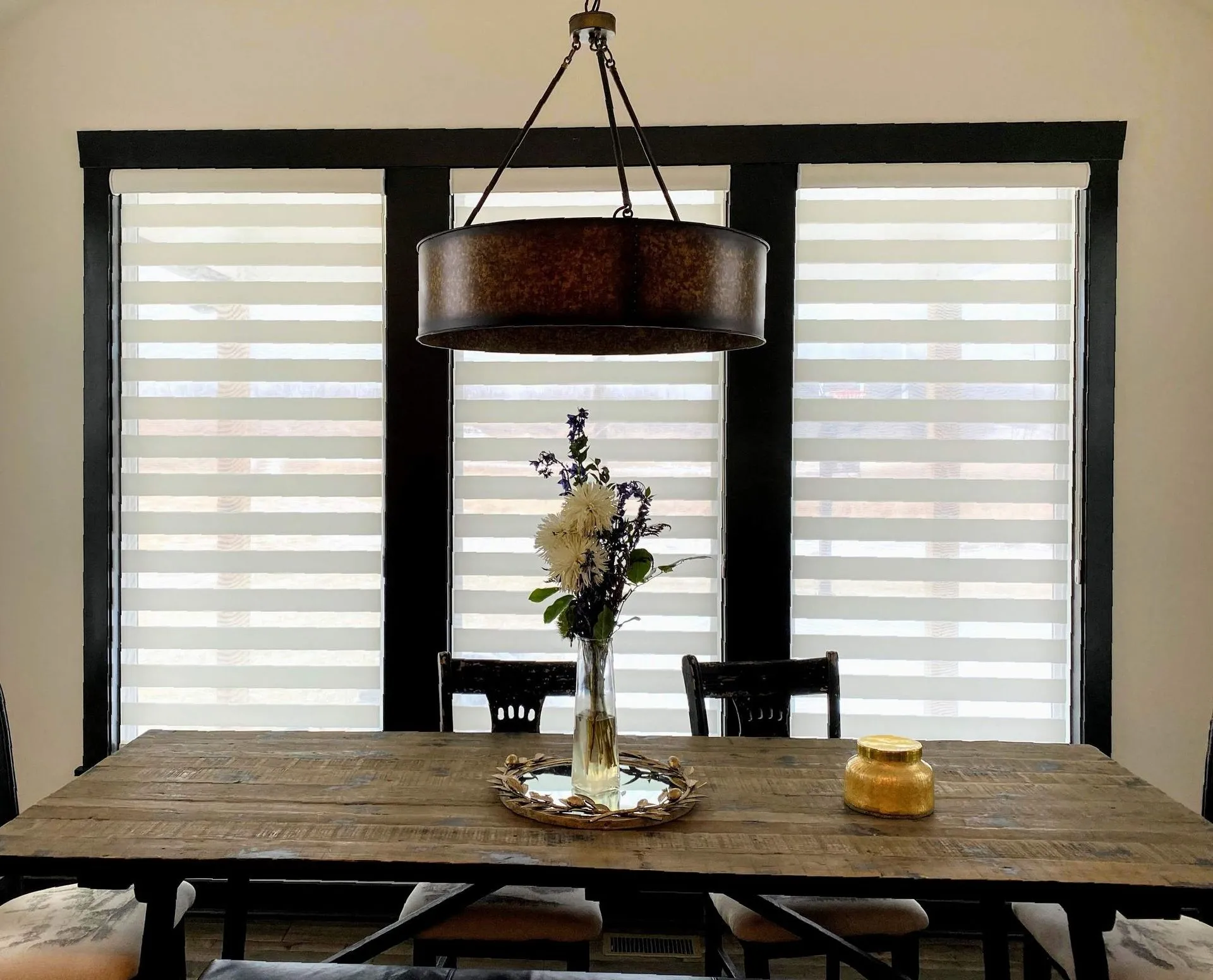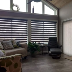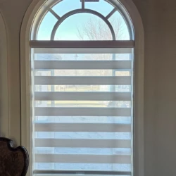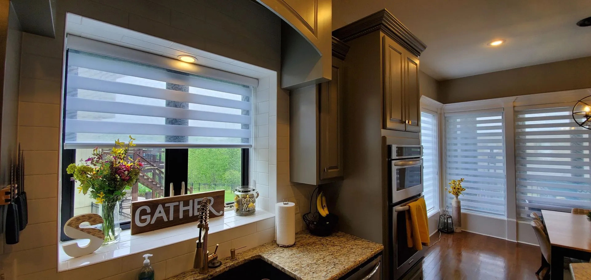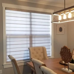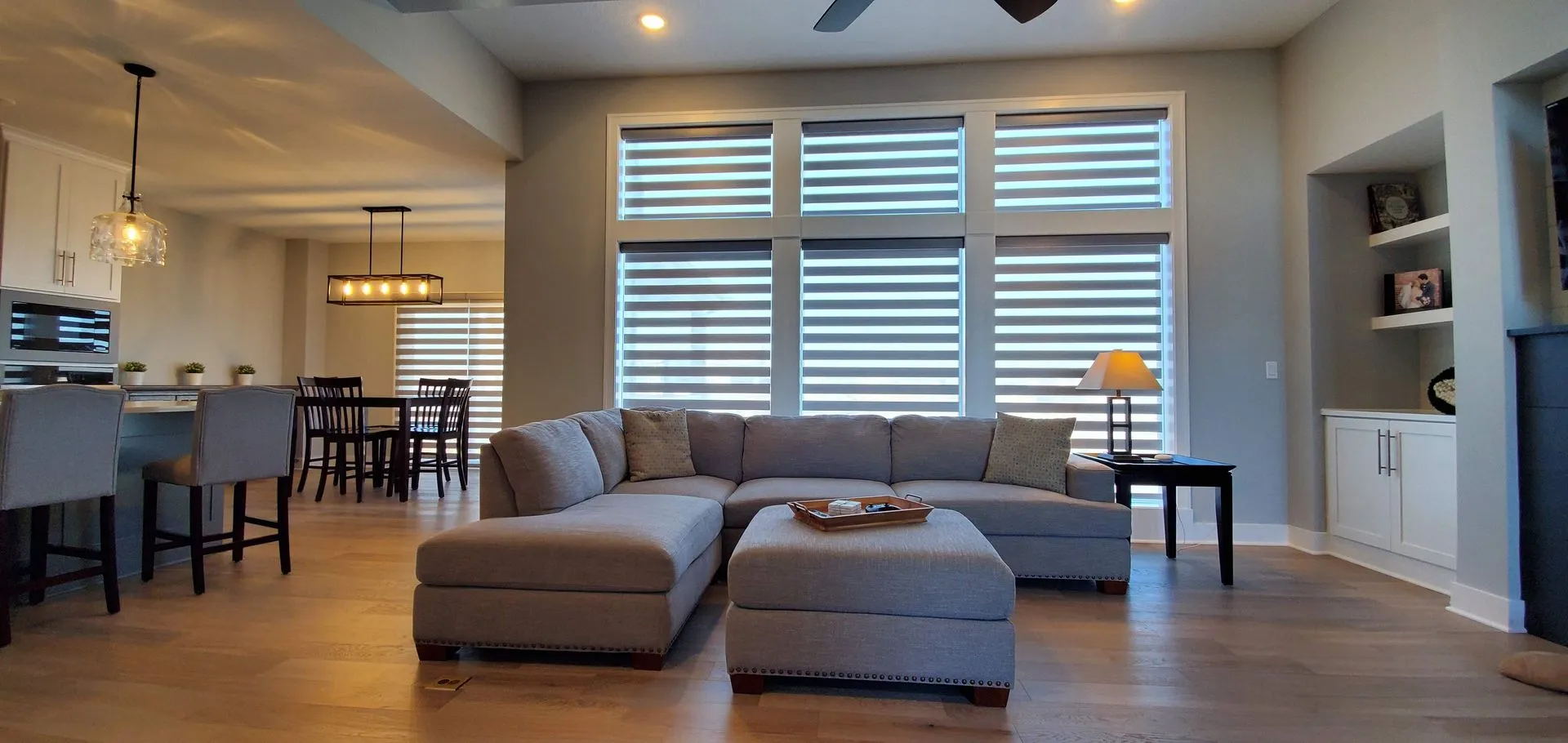 Banded Shades are modern and versatile window treatments that can transform any room. Banded shades, also referred to as dual shades or zebra shades, combine solid and sheer horizontal bands to form a single shade that gives you precise light control. When aligned, solid bands seamlessly block natural light and ensure privacy; when shifted, the sheer bands transition to diffuse light and reveal the view. Banded Shades allow you to control the light, privacy, and style in your room with ease.