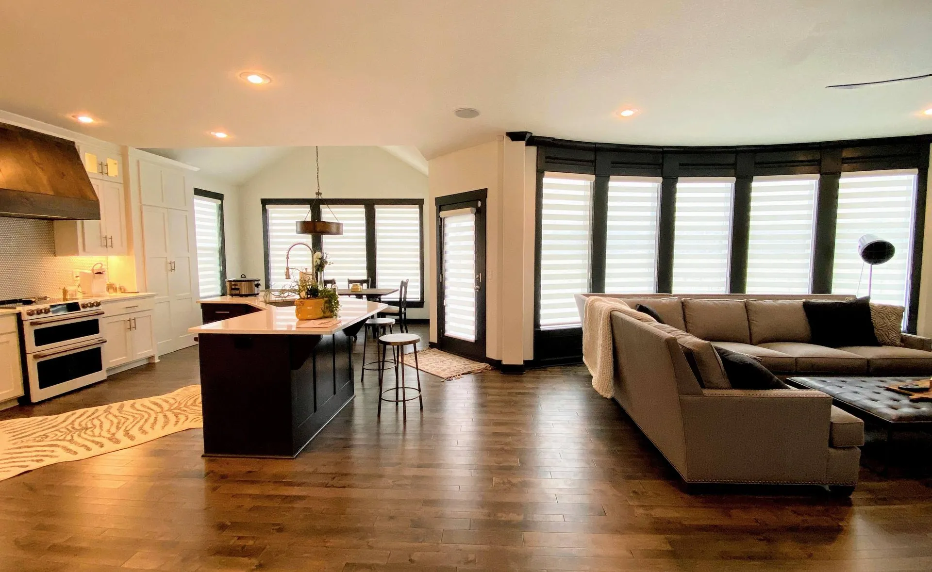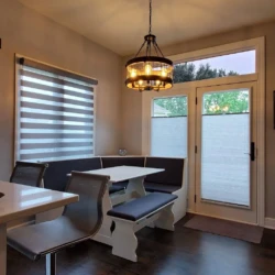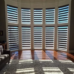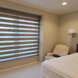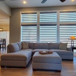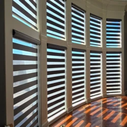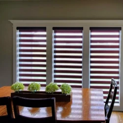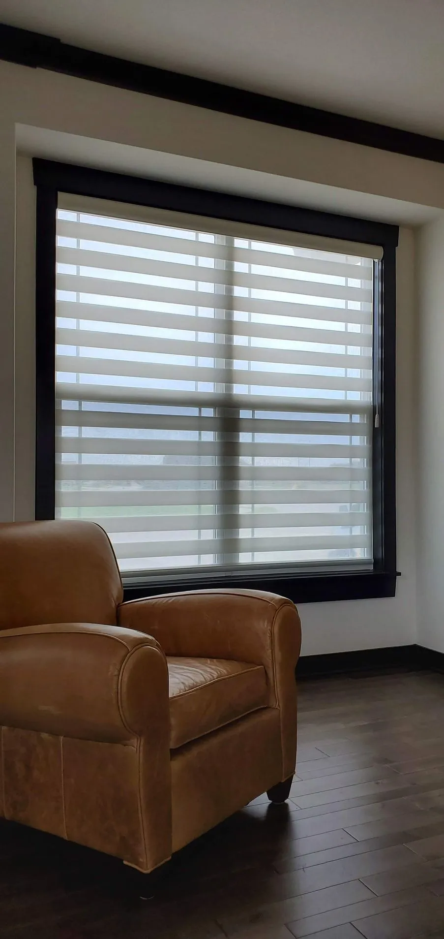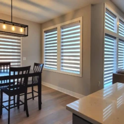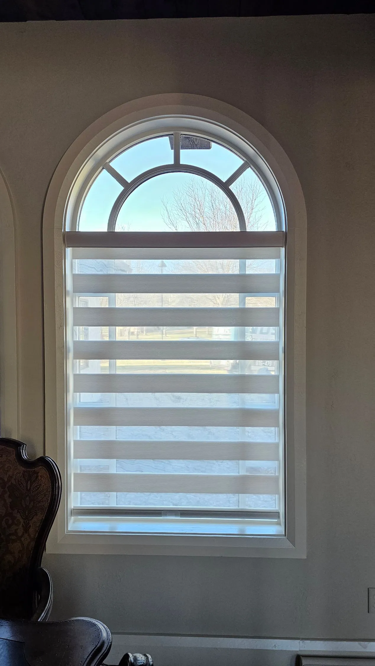 Banded Shades are modern and versatile window treatments that can transform any room. Banded shades, also referred to as dual shades or zebra shades, combine solid and sheer horizontal bands to form a single shade that gives you precise light control. When aligned, solid bands seamlessly block natural light and ensure privacy; when shifted, the sheer bands transition to diffuse light and reveal the view. Banded Shades allow you to control the light, privacy, and style in your room with ease.
